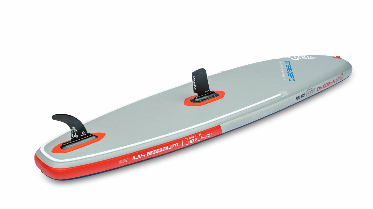Our Wingboard 4-in-1 Inflatables feature our 3D Rail Edge technology, a proprietary 3D elastomer compound that follows the contours of the board and creates a release edge that allows the boards to fully plane yet fold and roll up. Thanks to this 3D Rail Edge, you can accelerate and enjoy the most exciting planing sensation possible on an inflatable board.