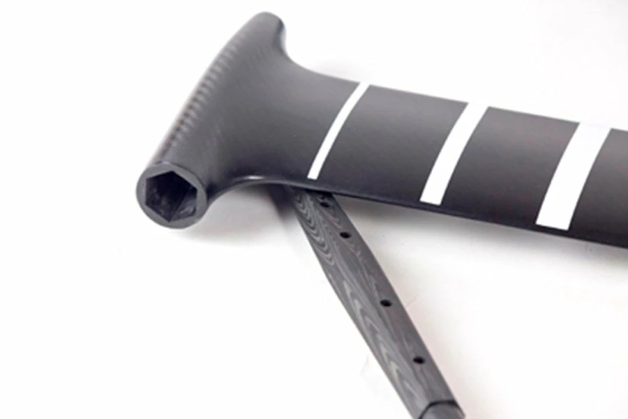 The mast layup is futuristic: at the heart is a multi piece hard wood core that gets wrapped with carbon that has optimized fiber orientation to maximize the potential of the materials. It is then carefully wrapped with bulletproof Aramid fiber and finally a Carbon cloth outer shell ensuring a part that is robust and will last.