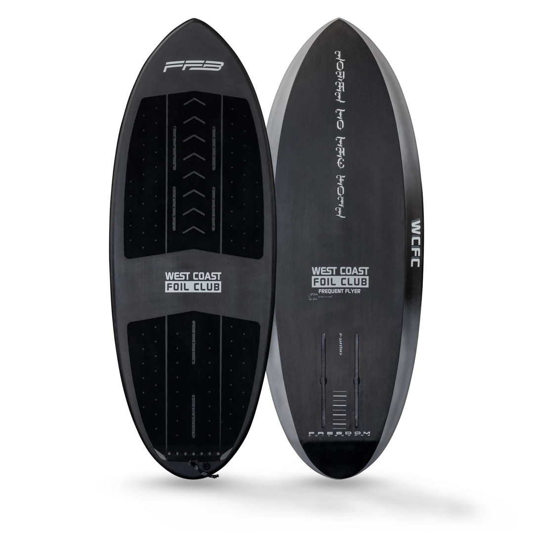 Freedom Foil Boards is stoked reignite the flame that lit the So Cal foiling world on fire! The West Coast Foil Club βWCFCβ and the Hurley Brothers, Jeff and Ryan, have influenced the foiling world for years with their unique and stylish perspective on foilboard design. As much as board designs over the years have changed the WCFCβs shapes have stood the test of time! Were beyond stoked and honored to bring back to the foiling world a board shape that was years ahead of its timeβ¦ The WCFC Frequent Flyer!