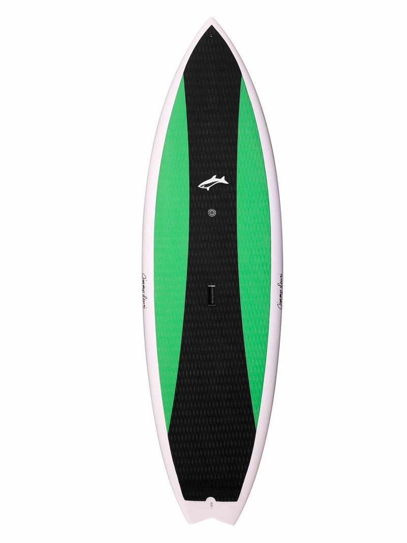 This high performance board is very accessible to any rider who wants to have maximum performance in the surf. Added width and volume makes this board very forgiving stability wise, without sacrificing performance aspects of the advanced shape. The fast, flat bottom nose entry that feeds into the single concave creating lift and speed then flowing back into the double concave through the fin area which gives the board drive through turns makes this board highly responsive and maneuverable. The wider tail block gives the board added drive and thrust while the swallow tail keeps it responsive and allows for easier, tight turning.